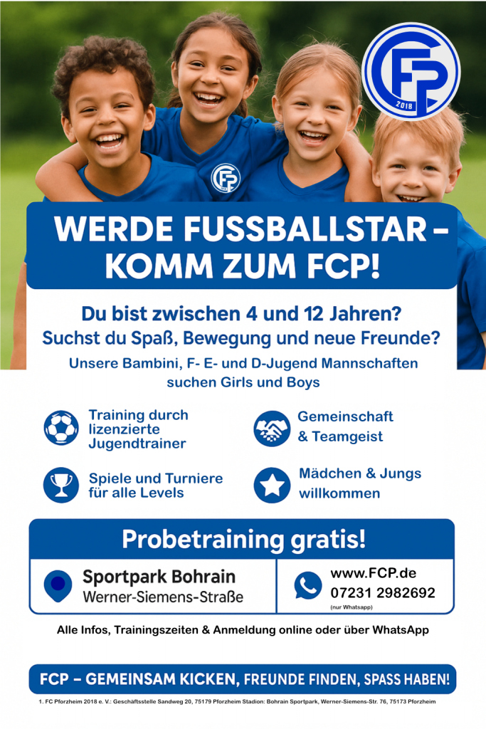 Willkommen im Jugendbereich des 1. FC Pforzheim 2018!